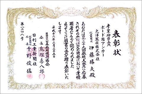 第29回「発明大賞・考案功労賞」受賞(2003年)