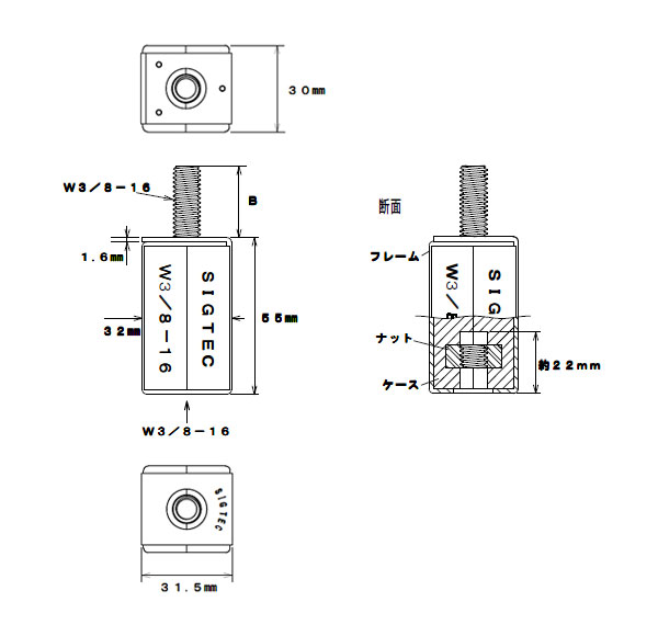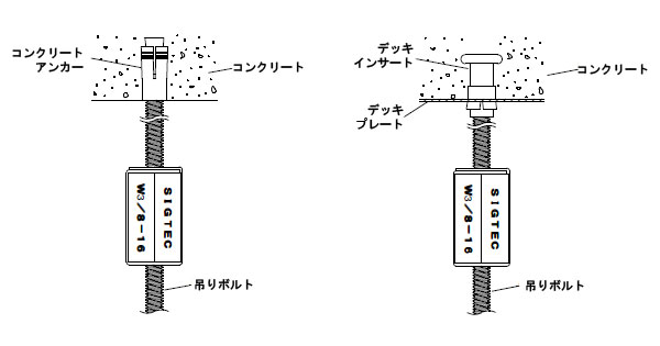 - 寸切りボルト、W3/8-18ボルトを接続し吊ることが出来ます。