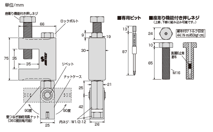 ■座彫り機能付き押しネジ 締め付けトルク目安: 44.1N・m(450kgf・cm)