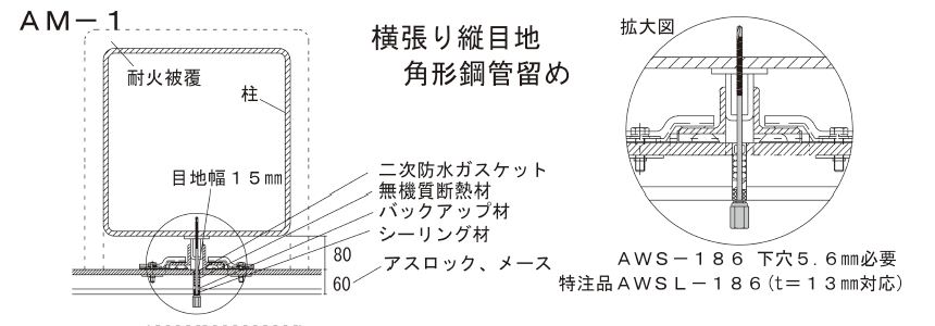 | AWS-186 | 164 | 鉄下地 3.2~7.5 | 6.2×186 | 75 | 22 | 180 (30本×6) |