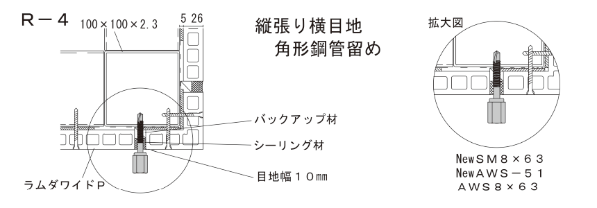 | AWS8×78 | 50 | 鉄下地 1.6~3.2 | 8.0×78 | 65 | 16 | 240 (30本×8) |