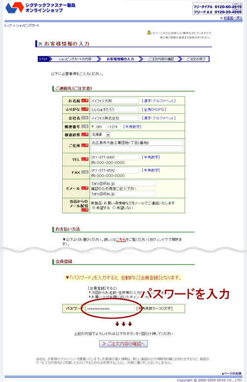 - 初回のご注文でパスワード入力するとその場で会員登録となります。(会員登録をしなくてもご注文いただけます。)