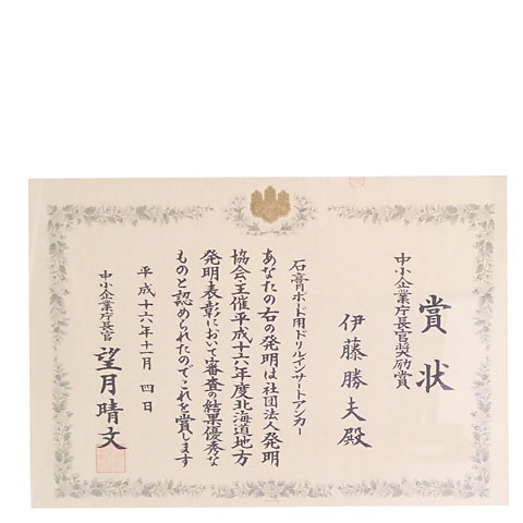 平成16年「中小企業庁長官奨励賞」受賞(2004年)