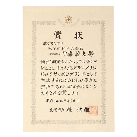 札幌市「MADE IN SAPPORO」準グランプリ受賞(2002年)