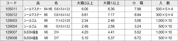- シールマスター、シールゴム、SUS304座金