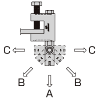 角度を調節後ロックボルトにて固定する。(ナットケースは180度方向に変更可能。)
