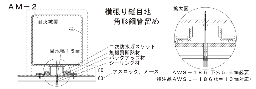 | AWS-186 | 164 | 鉄下地 3.2~7.5 | 6.2×186 | 75 | 22 | 180 (30本×6) |