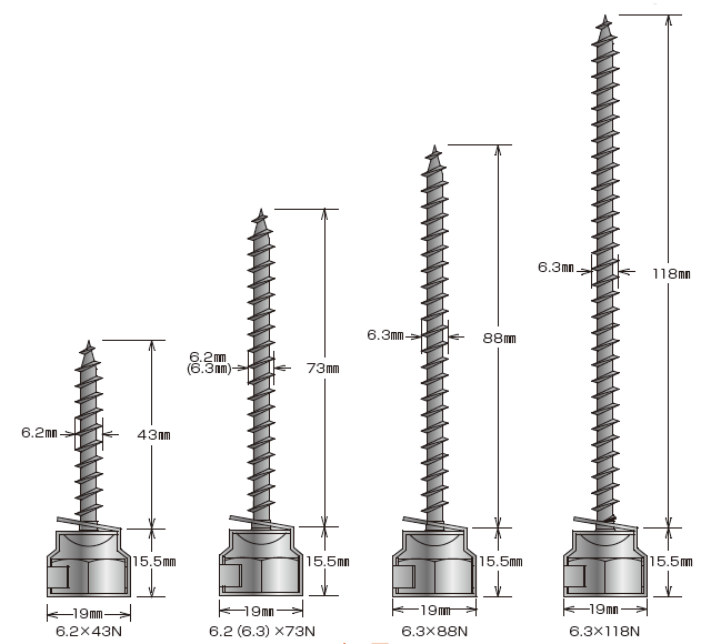 | ALCハンガー(6.2×43N) | SUS XM7 | SUS 304 | 鉄ユニクロ メッキ |